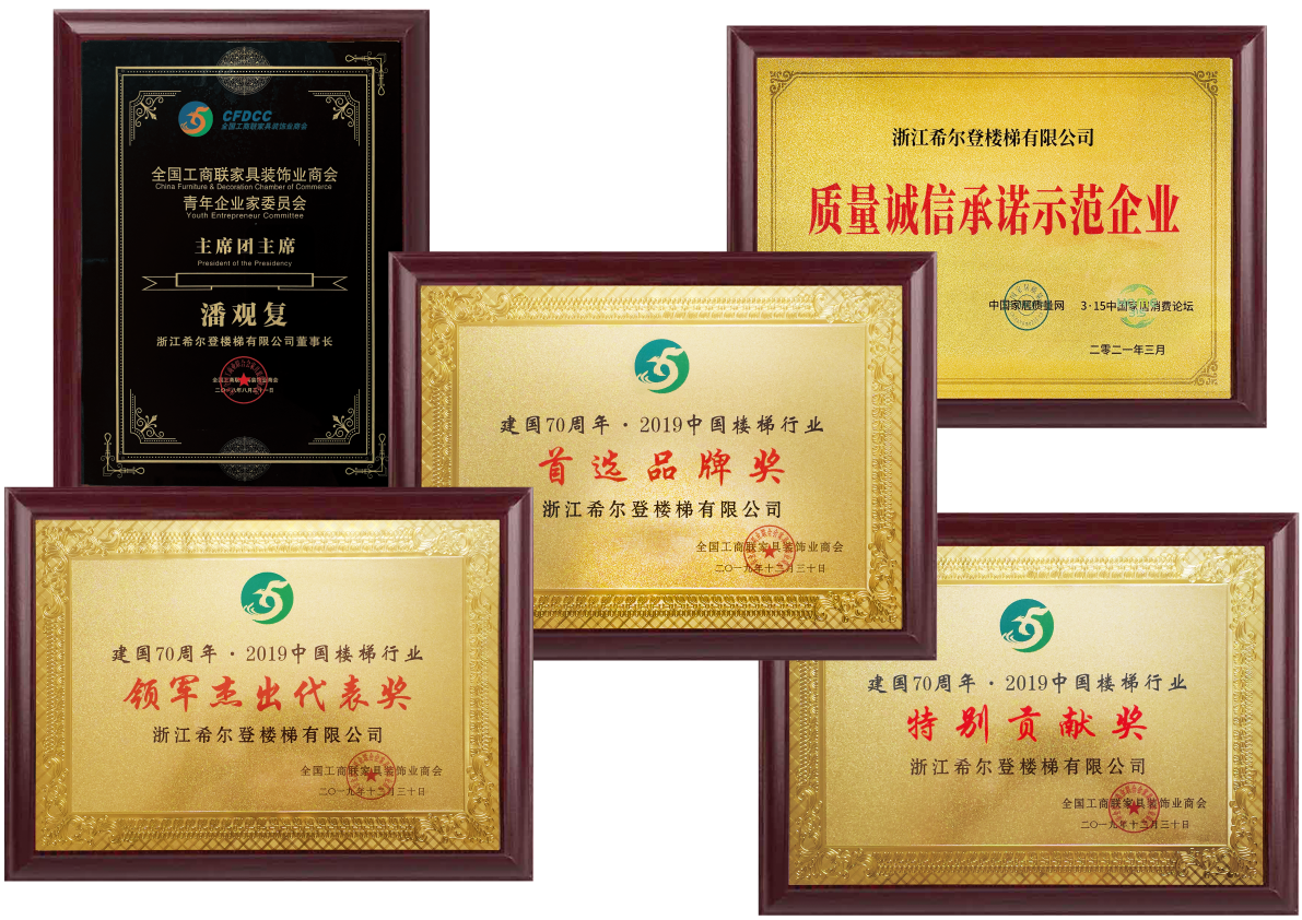 在不斷提升希爾登品牌和企業(yè)實(shí)力的同時(shí),希爾登一直熱心參與樓梯行業(yè)的健康發(fā)展;參與創(chuàng)立全國(guó)工商聯(lián)樓梯專委會(huì)并被推選為中國(guó)樓梯品牌聯(lián)盟執(zhí)行主席和樓梯專委會(huì)執(zhí)行會(huì)長(zhǎng);憑借在行業(yè)內(nèi)的專業(yè)地位,希爾登參與了《木質(zhì)樓梯》,《木質(zhì)樓梯安裝驗(yàn)收和使用規(guī)范》,《住宅內(nèi)用樓梯》,《建筑用玻璃與金屬護(hù)欄》四個(gè)國(guó)家和行業(yè)標(biāo)準(zhǔn)的起草工作。先后榮獲“中國(guó)樓梯十大品牌”、“金木樓梯領(lǐng)軍品牌”、“中國(guó)泛家居發(fā)展中企業(yè)500強(qiáng)”、“中國(guó)家裝行業(yè)金鉆獎(jiǎng)”、“金屬木質(zhì)樓梯一級(jí)資質(zhì)”等二十多個(gè)榮譽(yù)和稱號(hào)。我們幾乎參與和見證中國(guó)樓梯發(fā)展歷程中的所有重大事件。希爾登過(guò)去,現(xiàn)在和未來(lái)都是中國(guó)樓梯的標(biāo)桿企業(yè)。
